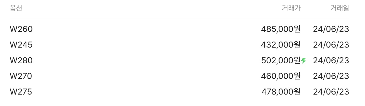 사이즈 별로 다르지만 평균적으로 400,000원대에서 500,000원대에 동일 제품 대비 낮은 리셀가를 형성하고 있습니다.