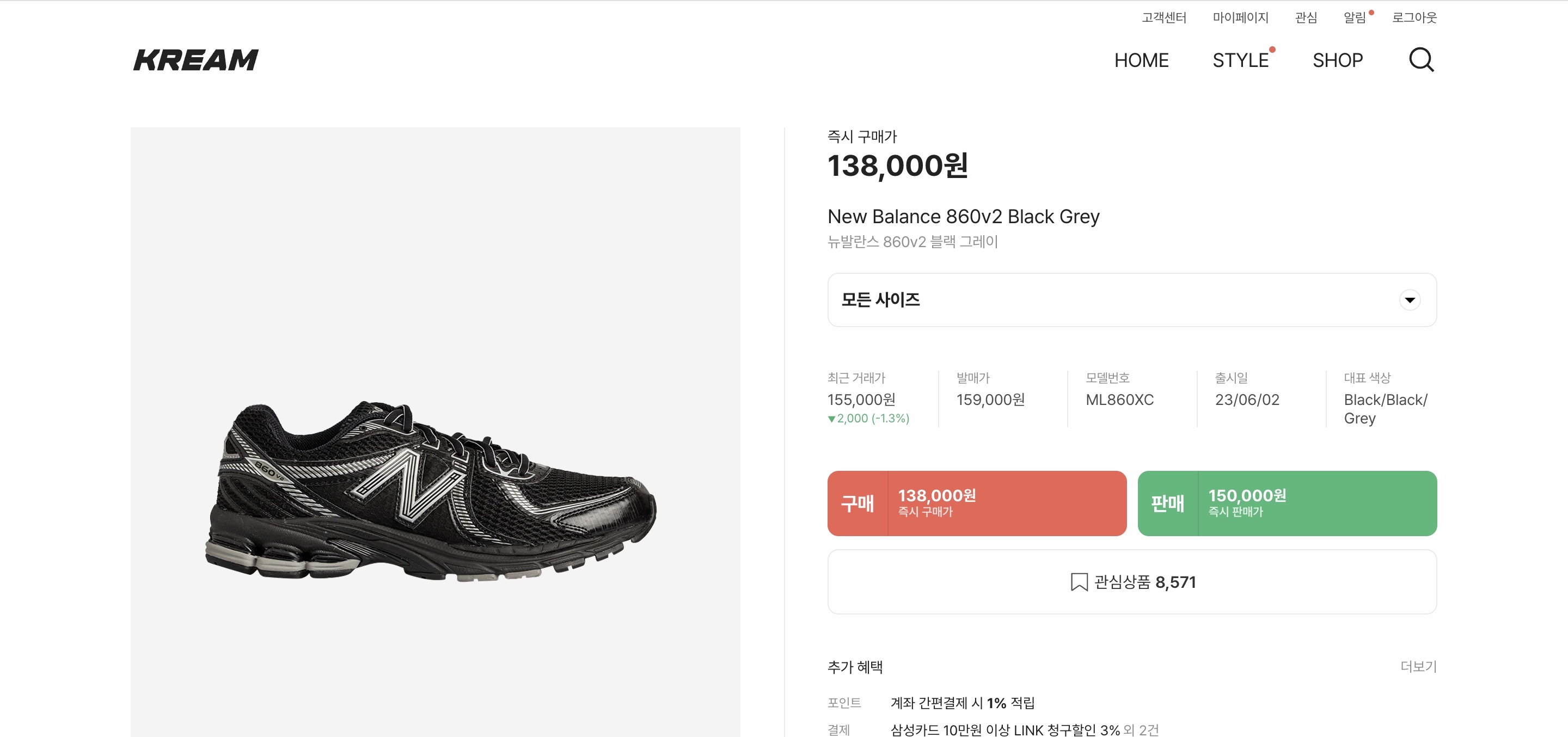현재 Kream에도 관심 상품 8,500개정도 저장된 것을 보니 인기 있는 상품이라 얘기할 수 있을 거 같습니다.